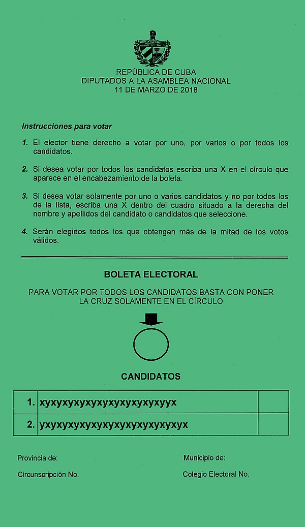 | Источник: Comisión Electoral Nacional confirma elección de los 605 diputados de Cuba Архивная копия от 27 марта 2018 на Wayback Machine | ||||