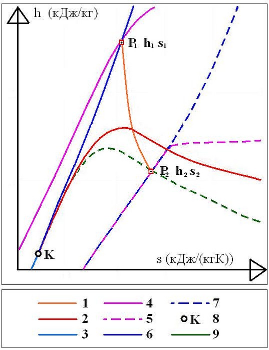 P1 h1 s1 — давление, энтальпия и энтропия пара на входе в турбину;