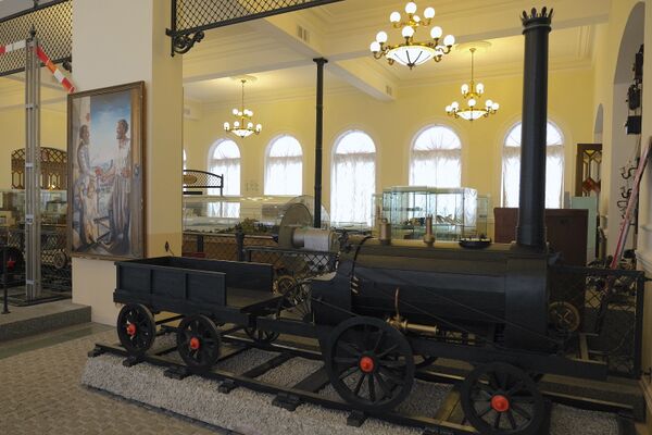 В 1836 году Черепановы построили первую в России железную дорогу длиной 854 м, соединившую Выйский завод и Меднорудянский рудник. В 1837 году будущий Император Александр II проехал по этой дороге и спустился в шахту[2][3].