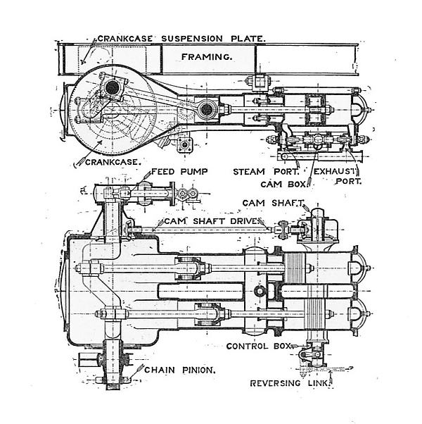 - грузовики с тихоходными но «сильными» паровыми машинами с цепной передачей ведущего момента на ось;