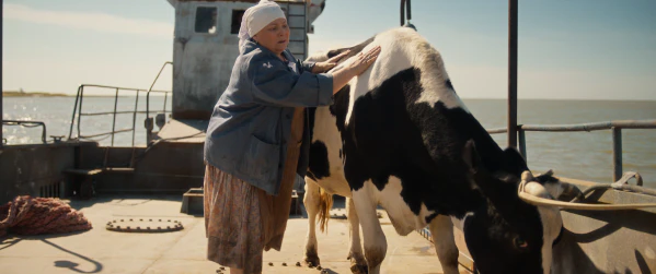 Я играю бабу с коровой, и мне очень повезло с партнёршей. Корова была потрясающая, кстати, никакая не дрессированная. Местный житель её привёл на съёмочную площадку. Корова, похоже, настолько была счастлива сняться в картине, что безропотно выполняла все указания режиссёра. Я её прикармливала тыквой, которую щедро давали местные жители со своих огородов[31]