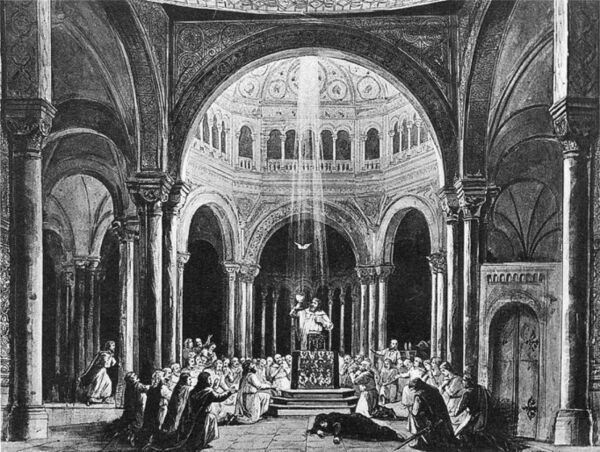 Рыцари собираются на последнее причастие, но Амфортас вновь отказывается провести обряд, доставляющий ему столько страданий и просит рыцарей убить его. Парсифаль исцеляет священным копьём рану Амфортаса и снимает покрывало с Грааля: чаша сияет в его руках. Белая голубица слетает из-под купола храма и реет над головой Парсифаля. Кундри обретает покой и прощение. Искупление свершилось.
