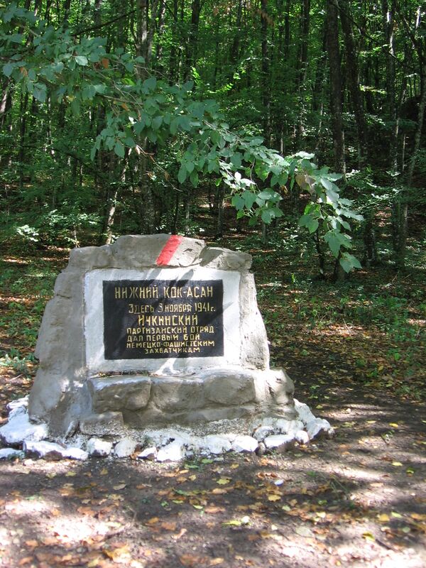 Первый и на долгое время самый крупный и успешный бой принял Ичкинский отряд под командой М. И. Чуба, он устроил засаду у Нижнего Кок-Асана. 3 ноября 1941 года вместе с пограничниками первого батальона 294-го пограничного полка вступил в бой с наступающим противником, силы которого составляли авангард в составе двух германских батальонов пехоты и румынского кавалерийского эскадрона. Бой длился 5 часов. Противник потерял до 120 человек, взяты трофеи — стрелковое оружие. Пограничная часть НКВД и военный госпиталь смогли благодаря партизанам оторваться от преследования и уйти на Ускут и далее к морю. После боя Ичкинский отряд отошёл на гору Скирда[12].