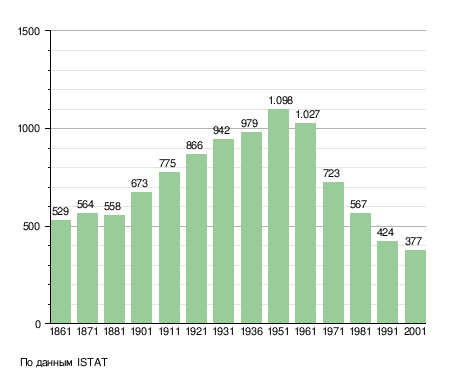 Население составляет 373 человека (2008 г.), плотность населения составляет 37 чел./км². Занимает площадь 10 км². Почтовый индекс — 24060. Телефонный код — 035.