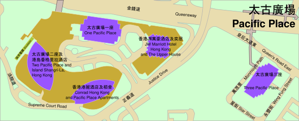 Включает построенные в 1985 — 1988 году 50-этажный отель JW Marriott / жилой комплекс The Upper House (164 м) и 40-этажное офисное здание One Pacific Place (162 м)[3][4].
