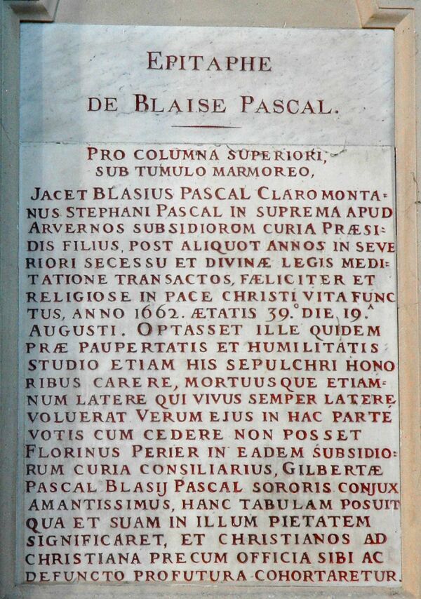 19 августа 1662 года после мучительной продолжительной болезни Блез Паскаль скончался. Похоронен в приходской церкви Парижа Сен-Этьен-дю-Мон.