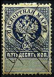Паспортные марки были в один рубль и в 15, 35 и 50 копеек. Они изготовлялись в Экспедиции заготовления государственных бумаг и продавались на тех же основаниях, что и гербовые марки[2].
