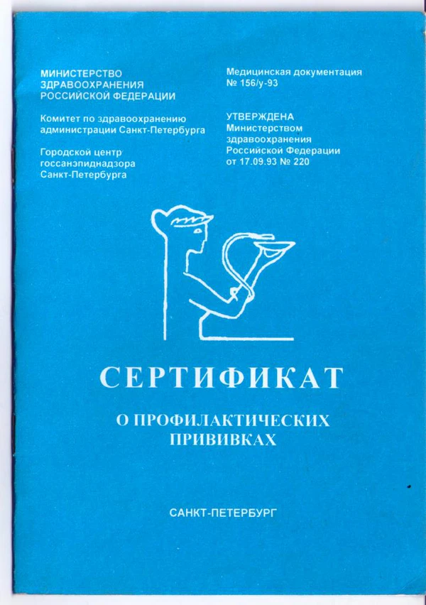 - Образец первой страницы сертификата (форма № 156/у-93) Архивная копия от 5 февраля 2021 на Wayback Machine
