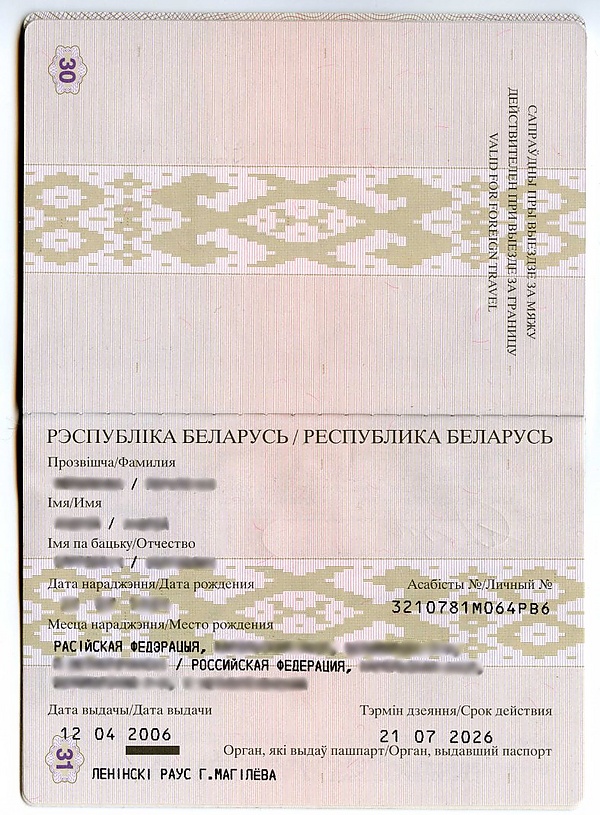 Паспорта, действовавшие на территории Республики Беларусь до 1 июля 2004 года[8]: