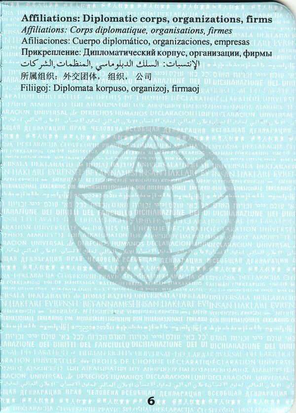 В 1979 году паспорт гражданина мира представлял собой 42-страничный документ с тёмно-синей обложкой и текстом на арабском, китайском, английском, французском, русском, испанском и эсперанто. Он содержал пятистраничный раздел для истории болезни и шестистраничный раздел для перечисления организационной принадлежности.