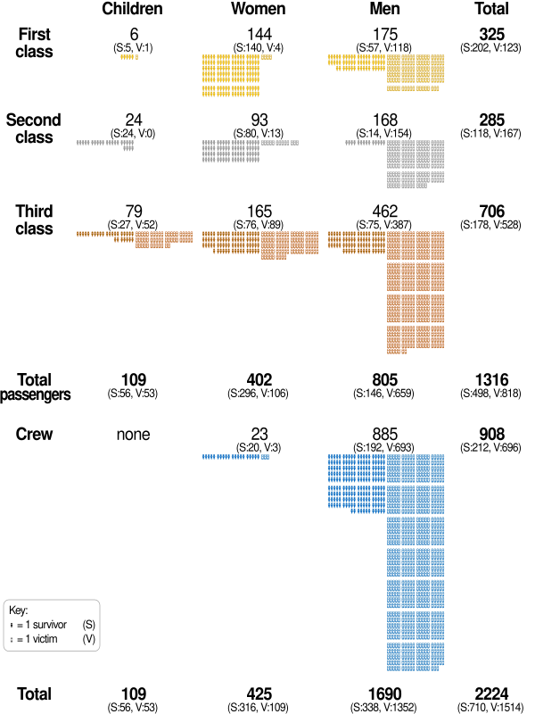 Из 1317 пассажиров погибло 817 — 49 % детей, 26 % женщин, 82 % мужчин от 2200 человек[24].