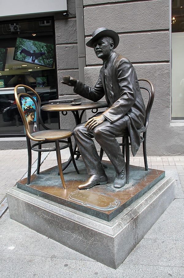 «Даю голову на отсечение, что ни один из многих тысяч жильцов этого дома не знает, что же изображено на его фасадах. Более того, смею утверждать, этого не знает ни один киевлянин, даже ни один житель земного шара, кроме разве что авторов проекта (если они ещё живы) и... меня...детишки на барельефах вовсе не играют со львом и львицей, они просто-напросто... спаивают их. Да, спаивают! Одни раскрывают ему пасть и подносят чашу с вином, наливая его из какой-то амфоры. Другие же малыши с гроздьями винограда в руках приготовляют вино. А двое даже дегустируют его... Вот о каких интересных вещах рассказал нам Андреев...»[2].