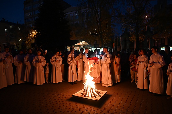 Бдение (вигилия) открывается Литургией Света, она же служба светильников (лат. lucernarium). Во дворе церкви разводится огонь, от которого зажигается пасхальная свеча (пасхал). После внесения в совершенно тёмный храм от пасхала зажигают свечи все присутствующие, а затем провозглашается наступление Пасхи (песнопение Exsultet). В нём связывается история Исхода с Искуплением и Воскресением Христа.