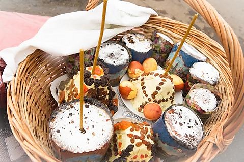 - В России в пасхальные корзины кладут кулич, пасху, крашеные яйца. Их приносят в церковь для освящения перед пасхальным праздником.