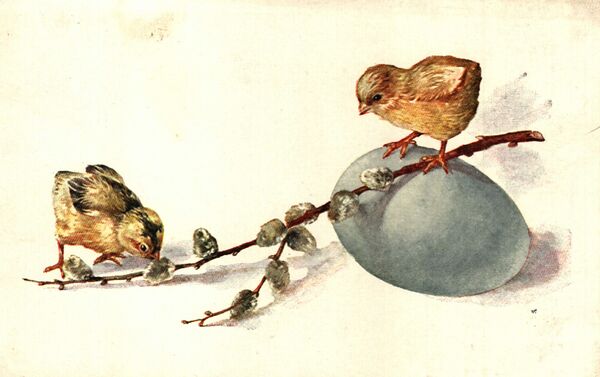 Цыплята, курицы и петухи были обычными мотивами на пасхальных открытках в течение всего XX века. Изображались как настоящие цыплята, так и их художественные образы.
