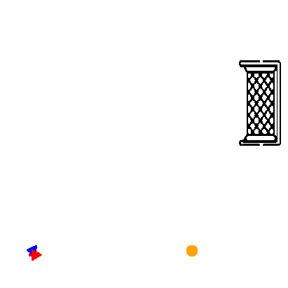 - Собачья кривая. Мяч (на графике — жёлтый) направляется в штрафную. Два игрока, одинаково быстрые, но быстрее мяча, пытаются его перехватить. Пока красный бежит прямо на мяч, синий оценивает траекторию. Синий, благодаря более короткому пути, не только быстрее, но и оказывается в лучшей позиции для удара по сравнению с красным. Мяч движется к синему и от красного.