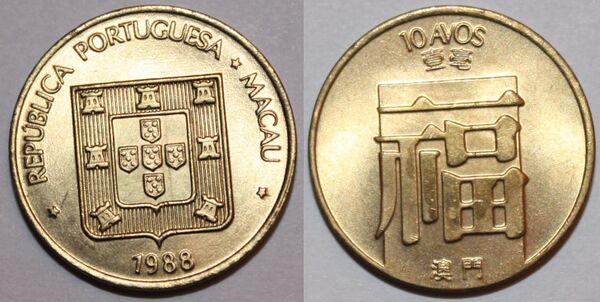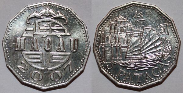 | 圓 (кит.), 圆 (кит. упр.), Pataca (порт.) Pataca (англ.) Pataca (фр.) | |