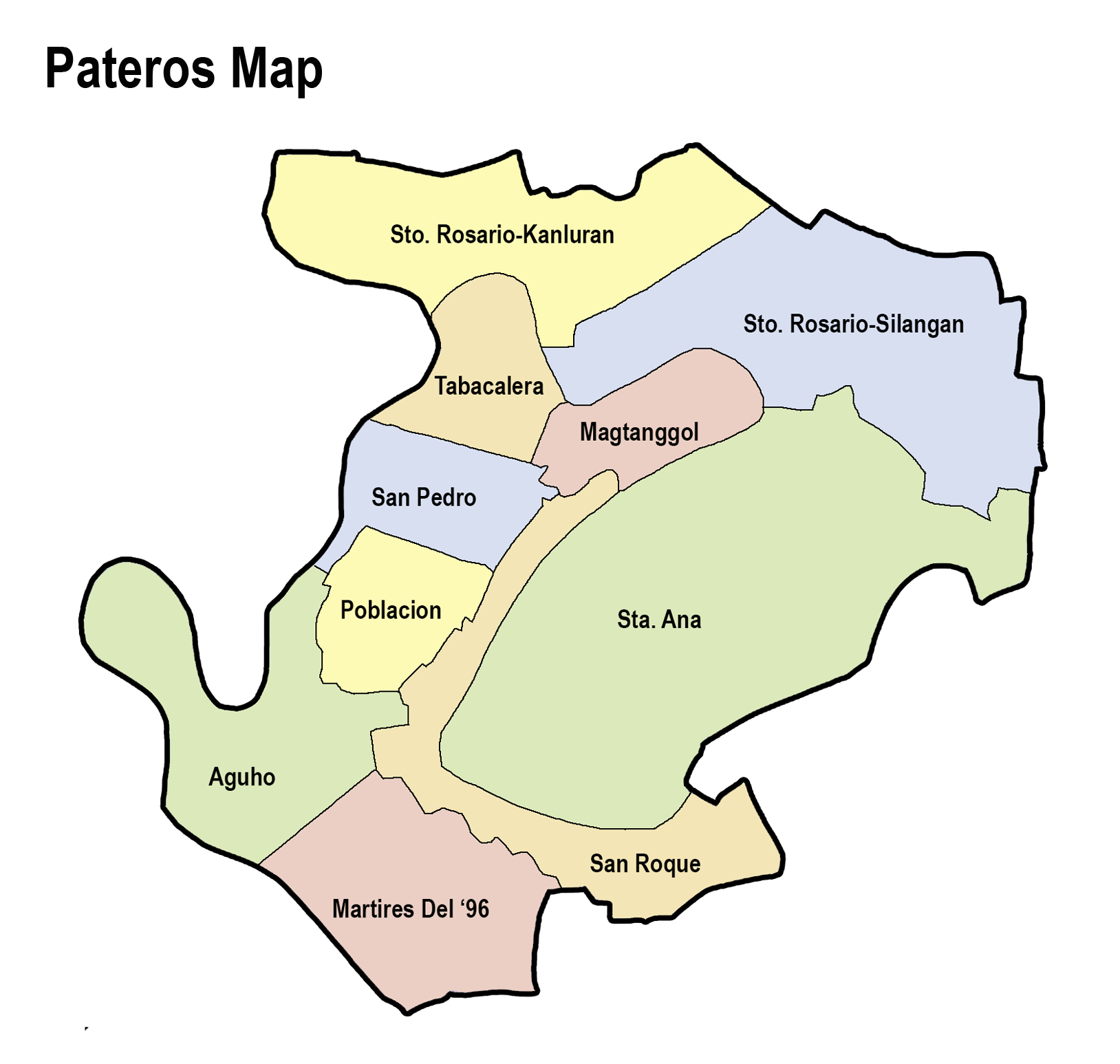 До 1799 года Патерос был районом Пасига и назывался Агухо, или «эмбаркадеро» (маленький порт). Именно порт превратил этот район в прогрессивный центр торговли. Позже испанский генерал-губернатор Филиппин издал указ о создании независимого муниципалитета Патерос, первоначально состоявшего из пяти баррио (районов): Агухо, Сан-Роке, Санта-Ана, Санто-Росарио и Мамангкат[10].