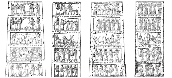 Из находок ассирийского периода обнаружены обломки стелы Саргона II[101], рассказывающей о подавлении восстания царя Хамата Илубиди[102], и тайник с клинописными табличками, среди которых — текст клятвы/присяги (adê) на верность преемнику царя Асархаддона, его сыну Ашшурбанапалу[103], весьма схожий[96][104][105] с подобными договорами, заключёнными с мидийскими вождями и обнаруженными в ходе раскопок в Кальху[106].
