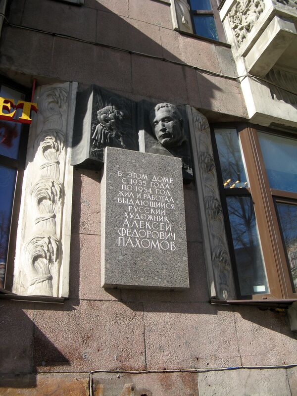 - Мемориальная доска с горельефом А. Ф. Пахомову установлена на д. 14 по Каменноостровскому проспекту.