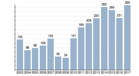 С июля по сентябрь 2013 года было осуществлено 120 судозаходов[11].