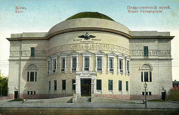 В 1899 году Министерство народного просвещения России разрешило Киевскому учебному округу основать Педагогический музей. В коллекции музея были наглядные пособия, учебники, картины по истории просвещения. Музей не имел собственного помещения, поэтому коллекция располагалась в зданиях Первой Киевской дворянской и Пятой Киево-Печерской мужской гимназий, позднее в стенах Высших женских курсов на Фундуклеевской улице. Большинство экспонатов были куплены на Всемирной педагогической выставке, состоявшейся в 1900 году, на средства председателя Киевского биржевого комитета, предпринимателя и мецената, действительного статского советника С. С. Могилевцева.