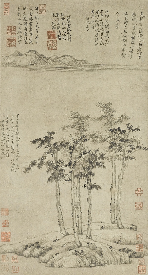Во время монгольской династии Юань (1271-1368) запрет на участие образованного китайского класса в делах государства создал условия для возникновения множества частных кружков поэтов, художников и интеллектуалов, собиравшихся в загородных домах в качестве своего рода внутренней эмиграции. Об этом периоде часто говорят как о реакции против живописи Южной Сун, и стремлении заново установить связь с живописью более ранних периодов. Знаковыми художниками периода являются Чжао Мэнфу (1254-1322), и Четыре Мастера Юани: Хуан Гунван (1269–1354), Ни Цзань (1301–1374), Ван Мэн (1308—1385), и У Чжэнь (1280-1354).