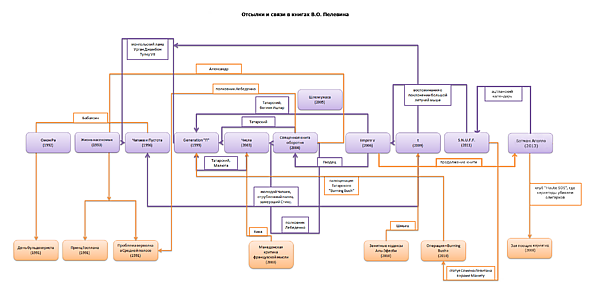 - Сафронова Л. В. Мифодизайнерский комментарий к текстам Пелевина // Критика и семиотика. — 2004. — Вып. 7. — С. 235—236.