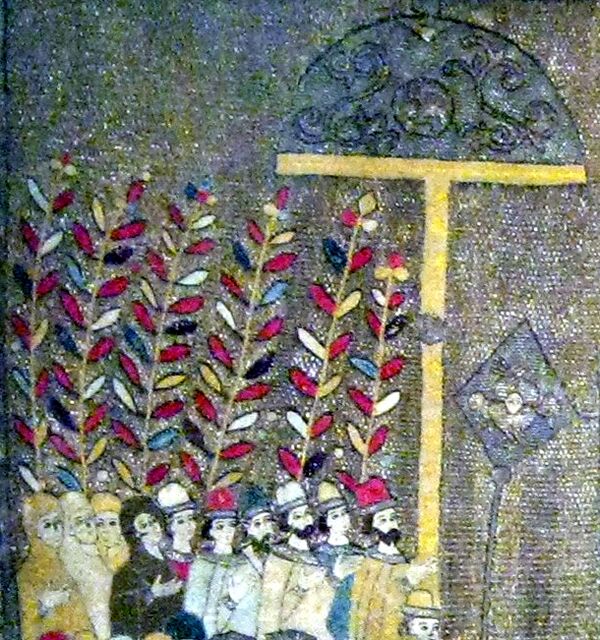 Поэтому, вероятней всего, изображён торжественный выход из Успенского собора великого князя Ивана III на вербное воскресенье 8 апреля 1498 года с семейством во время коронации Дмитрия Внука (сына Елены) соправителем — недолгий момент торжества партии Елены Волошанки.
