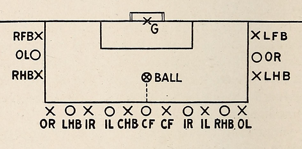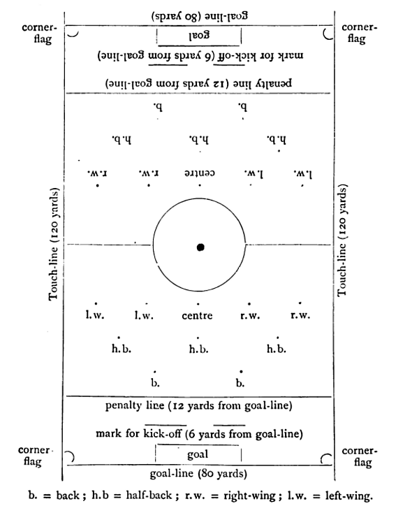 | 1896 | В пределах 12 ярдов от линии ворот | С любой точки на линии 12 ярдов от ворот | В пределах 6 ярдов от линии ворот | Не ближе 6 ярдов позади мяча | Нет | Нет | Нет | Если не признано неспортивным поведением | 1896 |