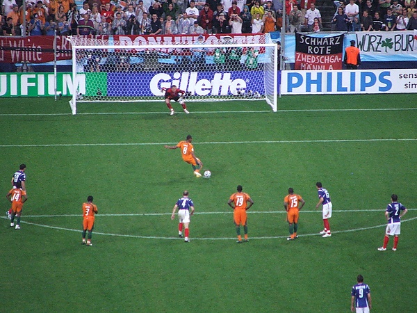 - В четвертьфинале Аргентина — Германия немецкий вратарь Йенс Леманн перед каждым ударом смотрел на бумажку, спрятанную в гетре: он изучил привычки семи аргентинских игроков, но из них били только двое — один удар он отразил, второй был близок к спасению. На ударе Эстебана Камбьяссо, о котором не было записей, Леманн сделал вид, что знает направление, и угадал, отразив пенальти и принеся победу Германии[9]. "Список Леманна" стал настолько известен, что теперь хранится в музее Haus der Geschichte.
