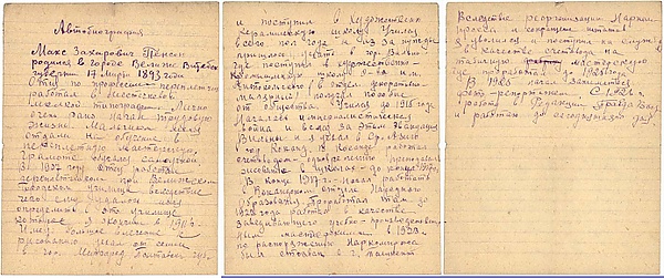 Написано рукой Макса Пенсона в 1939 году. Макс Захарович Пенсон родился в городе Велиже Витебской губернии 17 марта 1893 года.