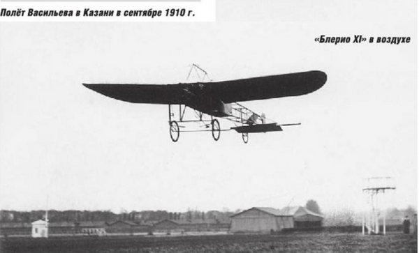 «Первым человеком, поднявшим в казанское небо самолёт, был французский авиатор Леон Летор, впоследствии известный авиаконструктор. Это случилось на первой казанской „авиационной неделе“ — показательных выступлениях лётчиков — в четвёртом часу дня 8 сентября 1910 года. Леон Летор пилотировал самолет Блерио V. Однако полёт француза был неудачным. Сделав два круга над ипподромом на высоте около 40 метров, самолёт совершил стремительный спуск у Оренбургского тракта. Аэроплан разбился. Авиатор, к счастью, отделался лишь ушибами. Чуть спустя, в кабину другого самолёта — Блерио XI с мотором „Гном“ — садится Александр Алексеевич Васильев, наш земляк, выпускник юридического факультета Казанского университета и „кандидат на судебные должности“ Казанского окружного суда. Аэроплан совершил 9 кругов за 19 с половиной минут и сел в центре ипподрома у самых трибун. Третьим участником полётов Казанской авиационной недели был Виссарион Кебуров (Кебурия). Кстати, ипподром в то время находился напротив нынешнего военного училища.»[2]