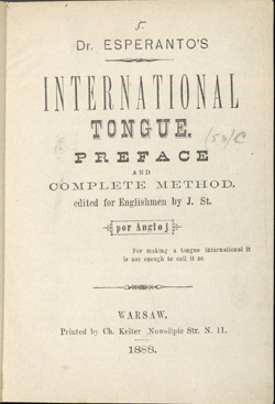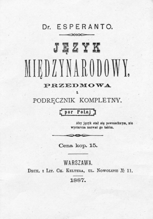 Окончательный проект первого учебника был готов уже в 1885 году, однако в течение двух лет Заменгоф не мог найти издательства, которое опубликовало бы эту книгу (будучи ограниченным в средствах, Заменгоф не мог осуществить издание за свой счёт). Издание 1887 года было осуществлено на средства, полученные Заменгофом от своего тестя (ковенского фабриканта Александра (Сендера Лейбовича) Зильберника) в виде приданого за свою невесту Клару Зильберник (помолвка состоялась 30 марта 1887 года, а свадьба — 8 августа; приданое было довольно крупным и составило 10 тысяч рублей[2]).