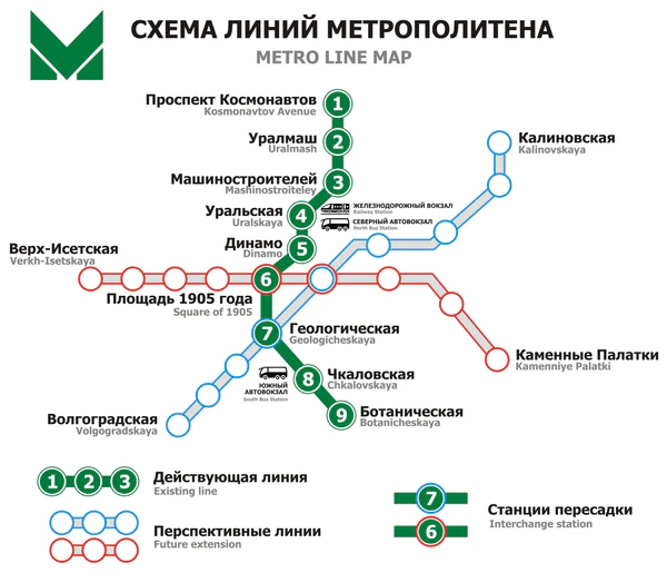 - 22 декабря 1994 года — «Уральская — Площадь 1905 года»