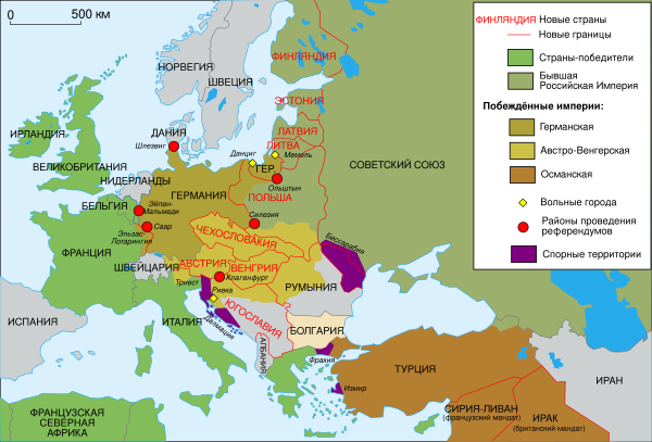 • Версальский договор (28.6.1919) • Сен-Жерменский договор (10.9.1919) • Нёйиский договор (27.11.1919) • Трианонский договор (4.6.1920) • Севрский договор (10.6.1920) • Мирный договор между Германией и Китаем (20.5.1921) • Американо-австрийский мирный договор (24.8.1921) • Берлинский мирный договор (25.8.1921) • Американо-венгерский мирный договор (29.8.1921) • Лозаннский договор (24.7.1923)