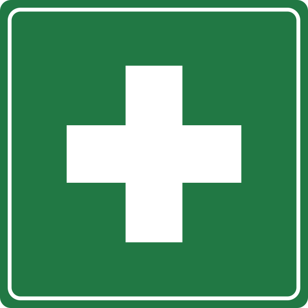 Международно признанным символом первой помощи является белый крест на зелёном фоне (показан ниже).