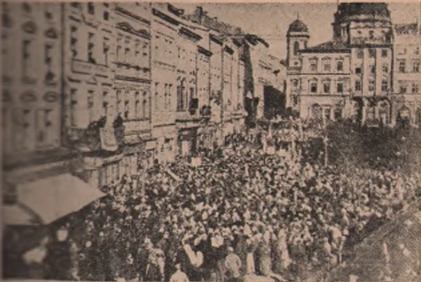Первым способом борьбы у большевиков был так называемый «срыв из середины» и поэтому они замыслили против украинского движения вызвать на Украине борьбу русских и евреев против украинцив, а когда эта борьба начнется, тогда большевики ударят из Москвы.