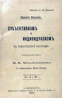 Кроме того Антид Ото в статье «Кое-что о философии „сверхчеловека“» негативно оценивал философию сверхчеловека Фридриха Ницше, в которой не видел ничего оригинального. «Полурецензия-полуэссе» была также посвящена книге Николая Бердяева (с предисловием Петра Струве[62]) о Николае Михайловском: «просто старой продырявленной метафизической скворечницей, которую за негодностью покинули даже легкомысленные скворцы и в которую вряд ли удастся заманить мудрую сову Минервы»[63][29][64]. Троцкий занимался и критикой поэзии: в частности, Бальмонта (строки его стихотворения Троцкий воспроизводит в обратном порядке) и Брюсова (моностих «О закрой свои бледные ноги»)[65][54][66].