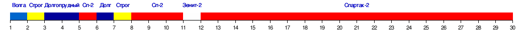 | 3 | Строгино (Москва) | 30 | 16 | 6 | 8 | 39 − 29 | +10 | 54 | |