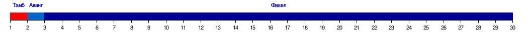 | 3 | Тамбов | 30 | 19 | 8 | 3 | 71 − 26 | +45 | 65 | |