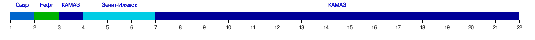 | 1 | КАМАЗ (Набережные Челны) | 25 | 16 | 7 | 2 | 39 − 10 | +29 | 55 | |