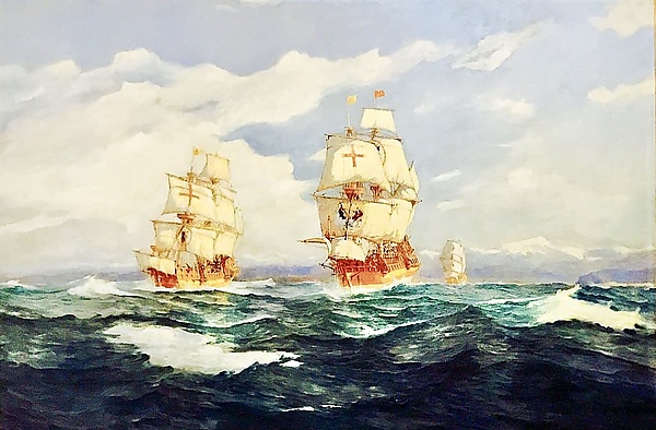 Глубины были невелики, и, чтобы не рисковать всей армадой, Магеллан отправил для разведки самый малый из судов — «Сантьяго», взойдя на его борт. Поход капитан-генерала по эстуарию длился два дня. Магеллан осознал, что это устье большой реки, а не морской пролив, хотя капитан «Сантьяго» и уверял, что Индия совсем близка и достижима по реке такой величины. 3 февраля поход на юг возобновился: задержка была вызвана протечкой корпуса «Сан-Антонио» и противными ветрами, дувшими весь конец января. Был достигнут мыс Корриентес. Чтобы не пропустить пролива, суда армады вставали на ночь на якорь. После пересечения 40-й южной параллели стало заметно холоднее. Во время шторма 13 февраля был повреждён киль «Виктории», однако окутавшие мачты флагмана огни святого Эльма были сочтены добрым предзнаменованием. Тяжёлый путь через каменистые мели закончился 24 февраля в заливе Сан-Матиас, который также был принят за устье пролива, от обнаружения которого зависел исход всей экспедиции[89].