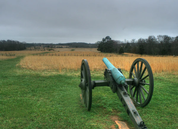 Оригинальный текст (англ.)[показатьскрыть]– Just about daylight I nociced two of the enemy's vedettes coming over the hill through the broomsedge. They were carrying their guns at trail arms, and, although coning in our direction, they did not see us, for they had their attention on the men at the Stone Bridge. Press Cowan and I ... walked up to the fence by the edge of the field, about 40 feet from the bank of Bull Run. The vedettes came on until they were within a hundred yards of us. I laid my gun down across the top rail and ran my eye down the barrel. At that instant Press Cowan, who was standing a step behind me, fired. This was the first musket fired at the Battle of Manassas. It was fired by Press Cowan, a private of Co. J, of the 4th South Carolina Infantry. It was about £00 yards below the Stone Bridge and about 40 feet from the bank of Bull Run, on the Centreville side, about 6 o'clock in the morning. .— [29]