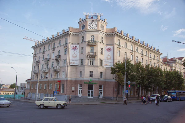При реконструкции ул. Первомайской и прилегающих к ней кварталов не удалось достичь целостного взаимообусловленного характера здания. И дело не в том, что новые и построенные в довоенное время сооружения решены в разном стилистическом характере. Причина заключается в том, что многоэтажные жилые дома, как и общественные здания, построенные по проектам архитекторов Л. Рыминского, А. Семененко и Д. Санникова в 1950—1957 годах, резко отличаются от построенных ранее не только насыщенностью декоративных средств, но главным образом принципами объемного построения[1].