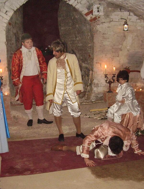 Идея создать детский театр возникла 7 октября 1779 года, во время празднования 41 дня рождения Болотова. 24 ноября 1779 года[2] (по новому стилю 5 декабря 1779 года) в одном из залов дворца состоялась первая постановка театра по пьесе М.М. Хераскова «Безбожник». Актёрами стали жившие в усадьбе дети[3], в том числе сын А. Т. Болотова Павел. В XVIII веке репертуара для детского театра ещё не существовало. Первую пьесу Андрей Тимофеевич сам написал за два дня.