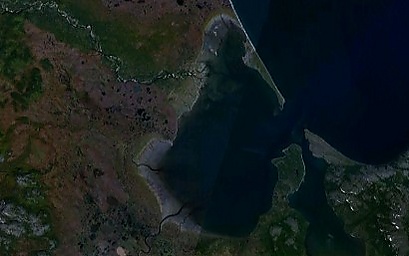 От Ямской губы отделён Ямской косой длиной примерно 12 километров. В середине косы расположен заброшенный посёлок Брохово, рядом с которым действуют метеостанция[3] и вертодром[4]. Имеется пристань со стороны залива. Ранее место дислокации отдельной радиолокационной роты Магаданского РТБ и воинской части № 03221.
