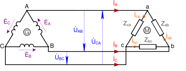 Трёхфазная система называется электрически связанной, если её отдельные фазы соединены между собой электрически.