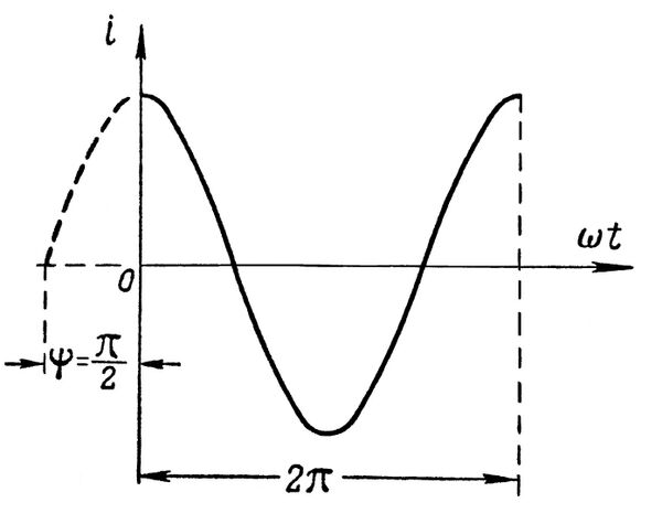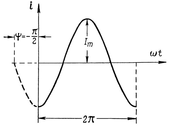 Начальная фаза переменного синусоидального тока может быть положительной или отрицательной величиной. При мгновенное значение синусоидального тока в момент времени положительно, при — отрицательно.