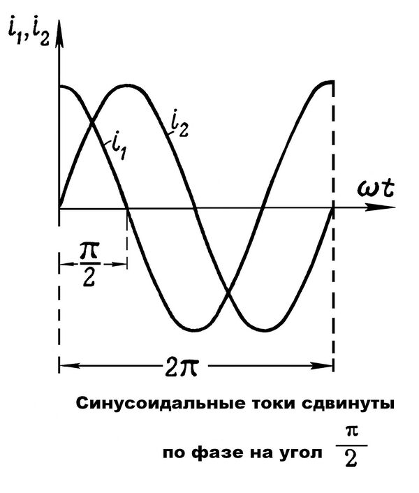Двухфазным электрическим током называется совокупность двух однофазных токов, сдвинутых по фазе относительно друг друга на угол или на 90°.